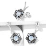 The flower also includes opalites. There are three little opalites placed around a larger stone that stands out in the middle. All these stones are milky white, a characteristic color of opals.