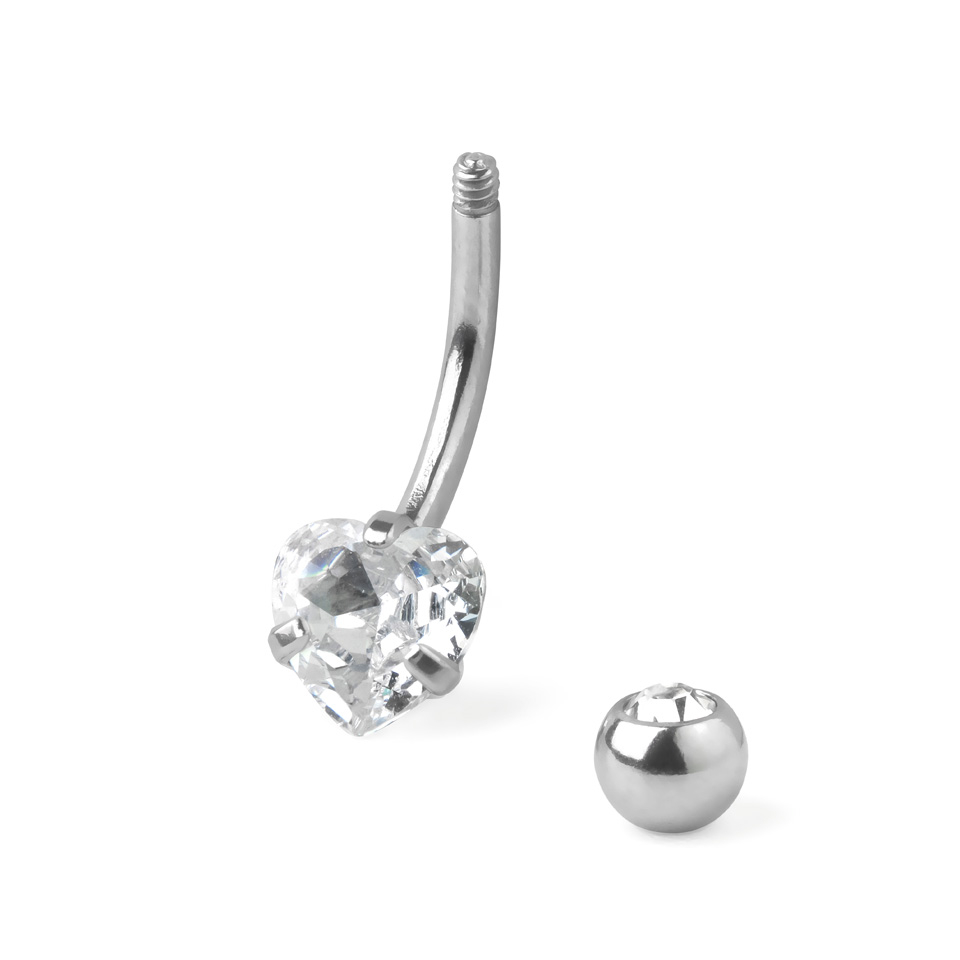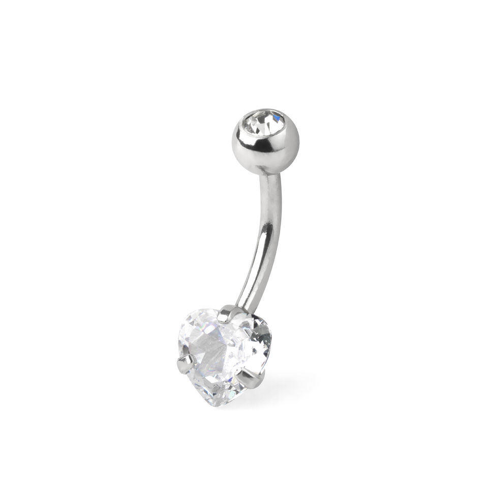 Belly button ring with bottom heart-shaped gem