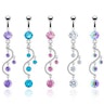 This fabulous belly button ring is available in five feminine colors that you can choose from before adding it to your cart. The color you select will be the same for all the stones, including the balls on the top and bottom of the barbell.