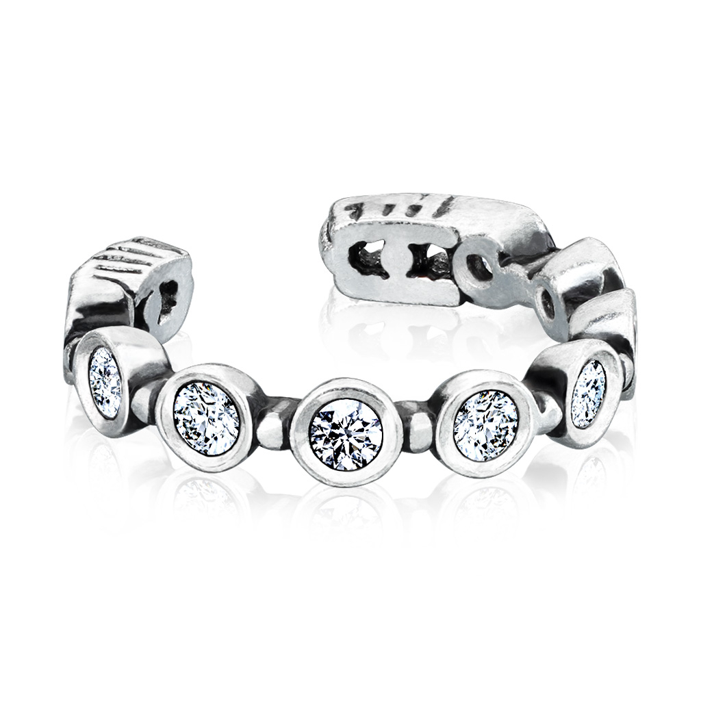 The cuff is studded along the edge with nine beautiful zirconia stones, placed one next to another. Each of them has a diameter of 1/16" (1.5 mm), which means that it's a quite small and discreet piece of jewelry. However, you will love how it looks in your ear.