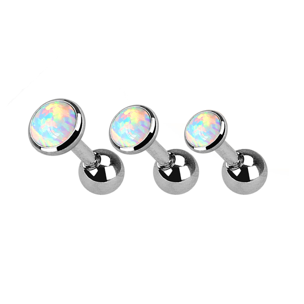 Great set of three sweet ear piercings with an opal stone in three beautiful colors. These studs will look great if you wear them next to each other, for example, in the same ear. Each set contains studs in 1/8", 5/32", and 3/16" (3 mm, 4 mm, and 5 mm).