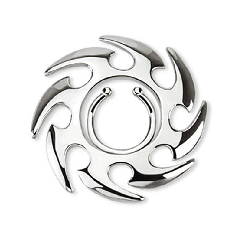 This is your chance to get a fantastic nipple ring with a tribal sun and a spiral-shaped design. This nipple shield consists of a beautiful tribal with flames in all directions, as if the ring turned around itself. In the center, there's a small clip that you can put around your nipple and slightly press it to set it in place.