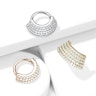 The ring is 5/16" (8 mm) in diameter, and you can choose from either 3 or 5 rows on the shield, which are adorned with tiny clear stones.