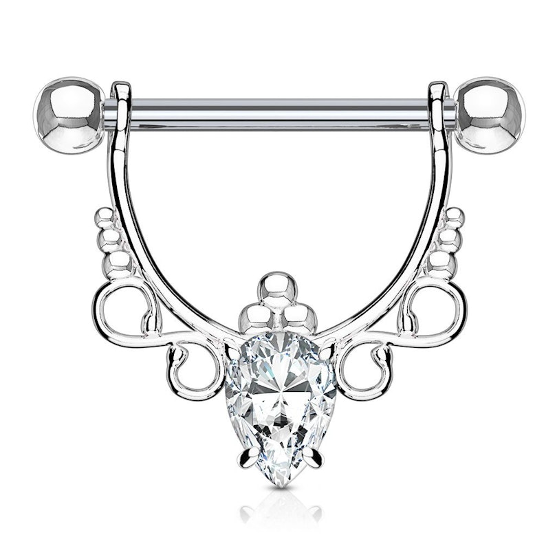 Name: Nipple shield with a filigree design and a pear-shaped stone