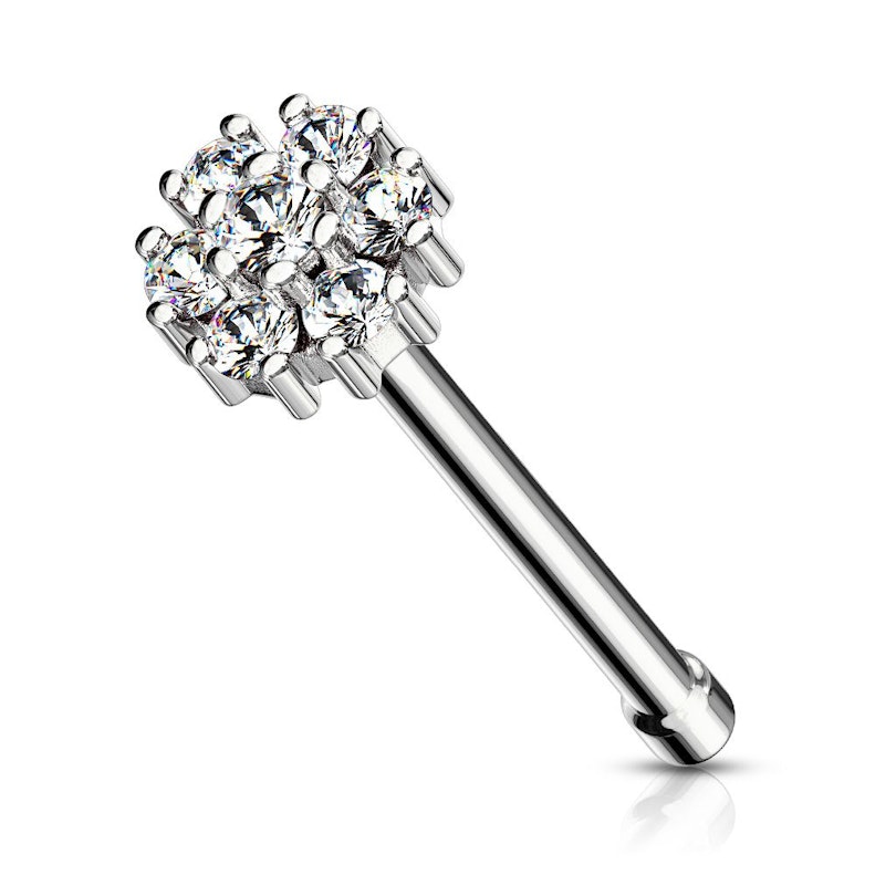Name: Nose stud with round top and many stones
