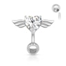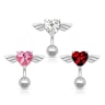 Get one of the most popular tattoo symbols for your belly piercing. We are talking about the winged heart, of course. :-) This belly ring is made of surgical steel, the most widely used material in body piercing jewelry because it doesn't release nickel. The belly ring has a beautifully facet-cut stone in the center, available in different colors.