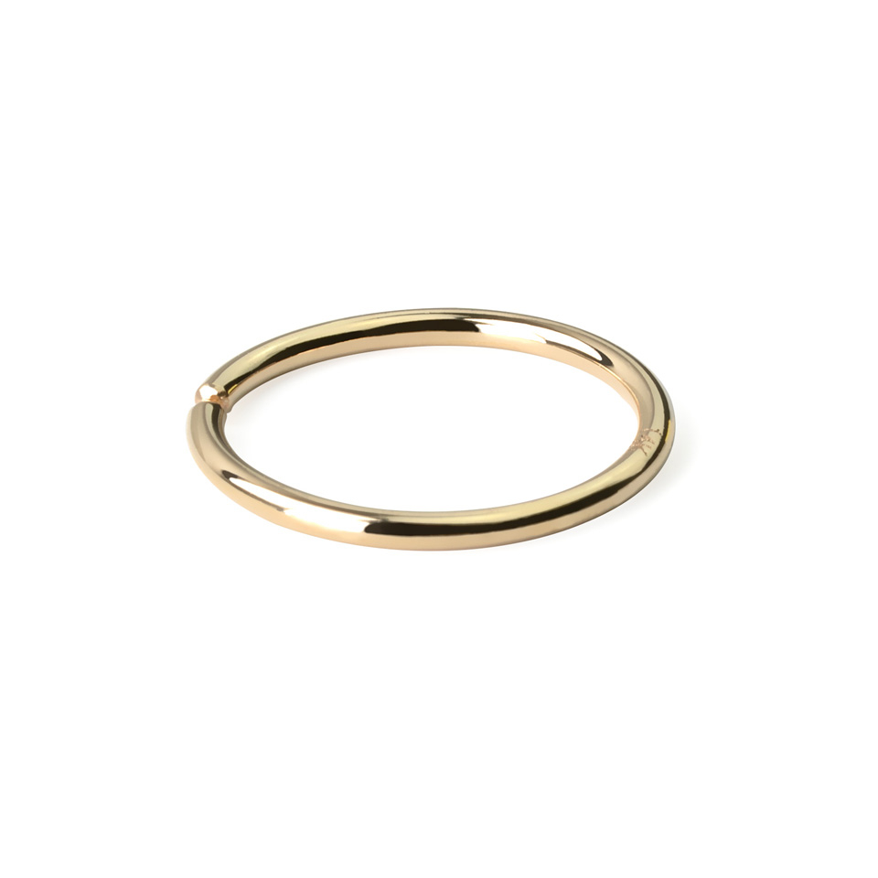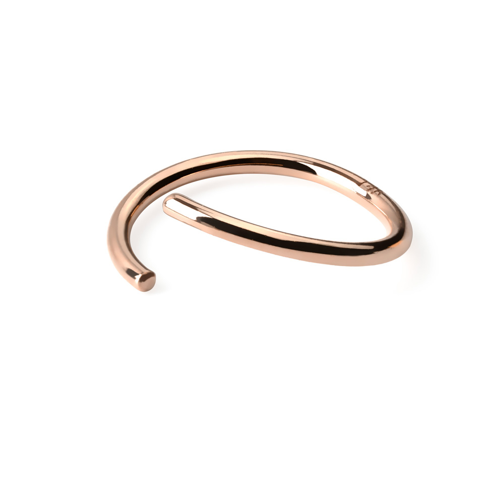Keep it simple - that's the motto of this seamless ring that doesn't come with any fancy closure mechanism like locking balls or hinges. The ring is made of 14-karat gold and consists of a single piece that should be twisted open to slide it into the piercing. We tried to make the opening between the ends as small as possible, smaller than in the picture. The picture intends to show that there's an opening, even if the real model looks like an endless ring.