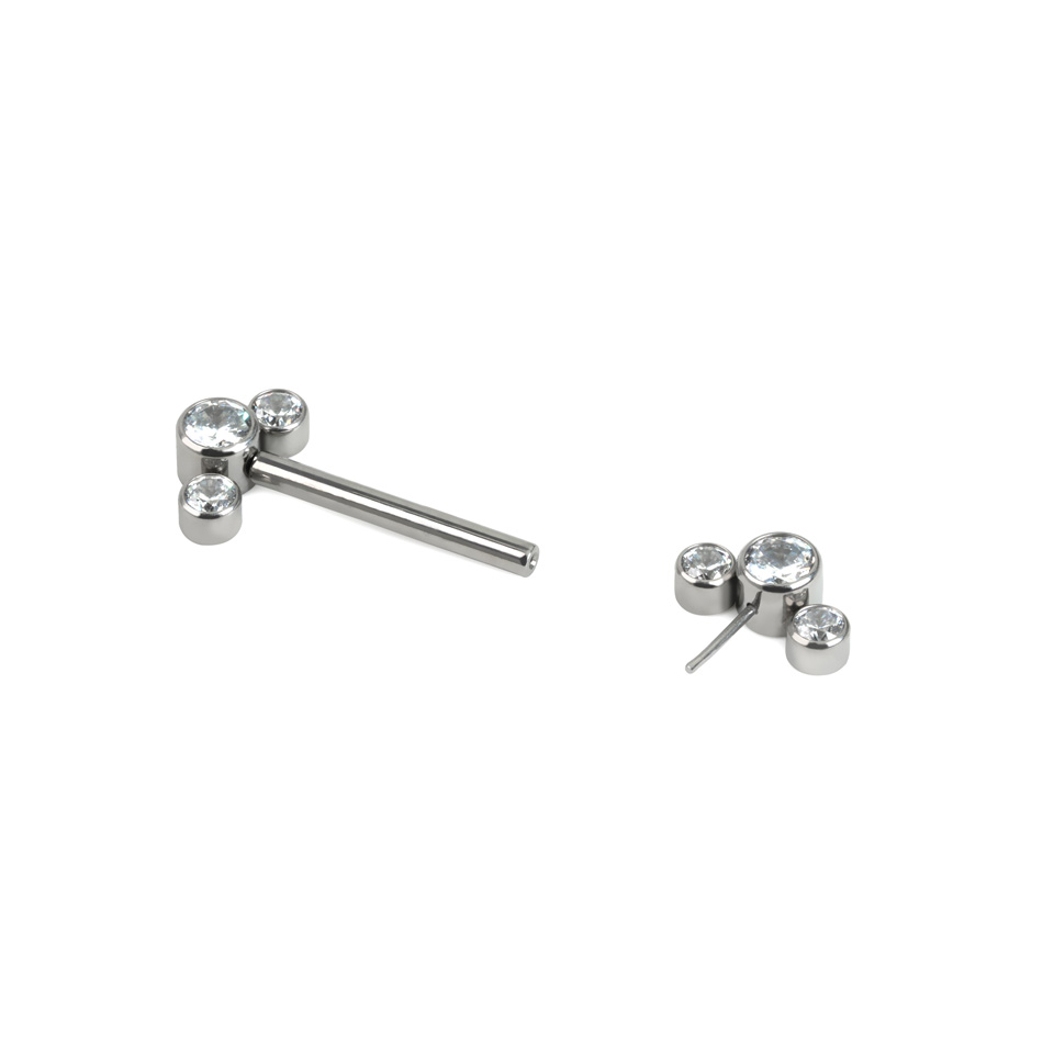 Threadless nipple barbell with 3 CZ bezel set ends
