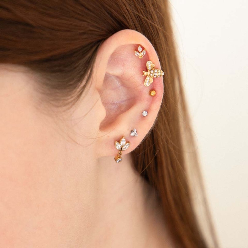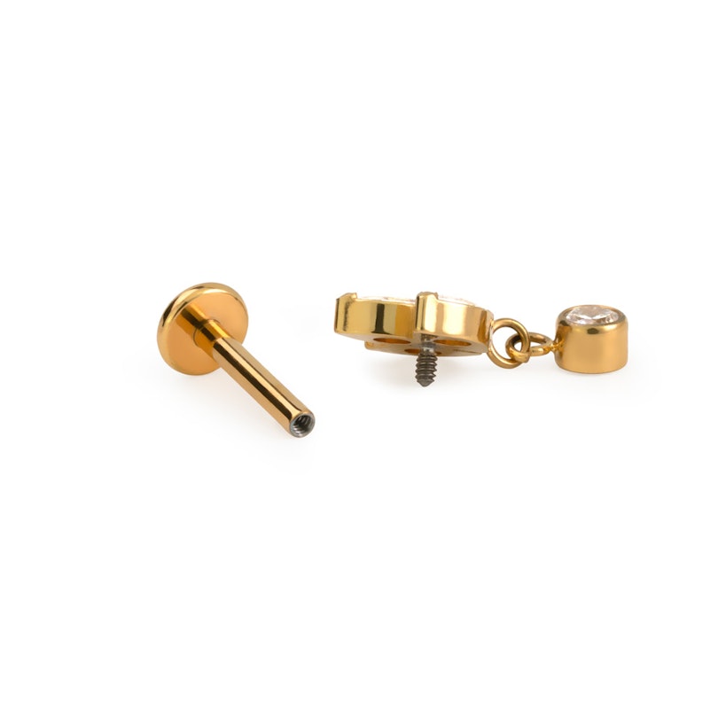Available in 6mm and 8mm lengths, this will look great in a range of ear piercing locations. Why not pair it with your other jeweled items for a unique arrangement? The top of the labret measures 6.4 mm (0.25") in length and the dangle is 4.8 mm (0.19") long.