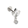 This charming labret has three bezel set marquise cut stones in a lotus flower design, and a bezel set round stone attached on a dangle.
