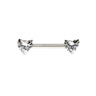 Titanium nipple barbell with heart shaped CZ stones