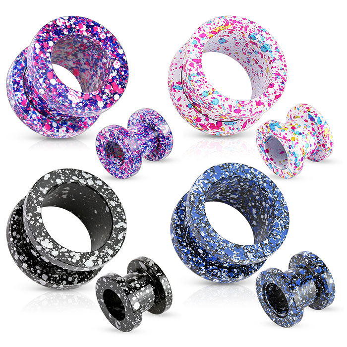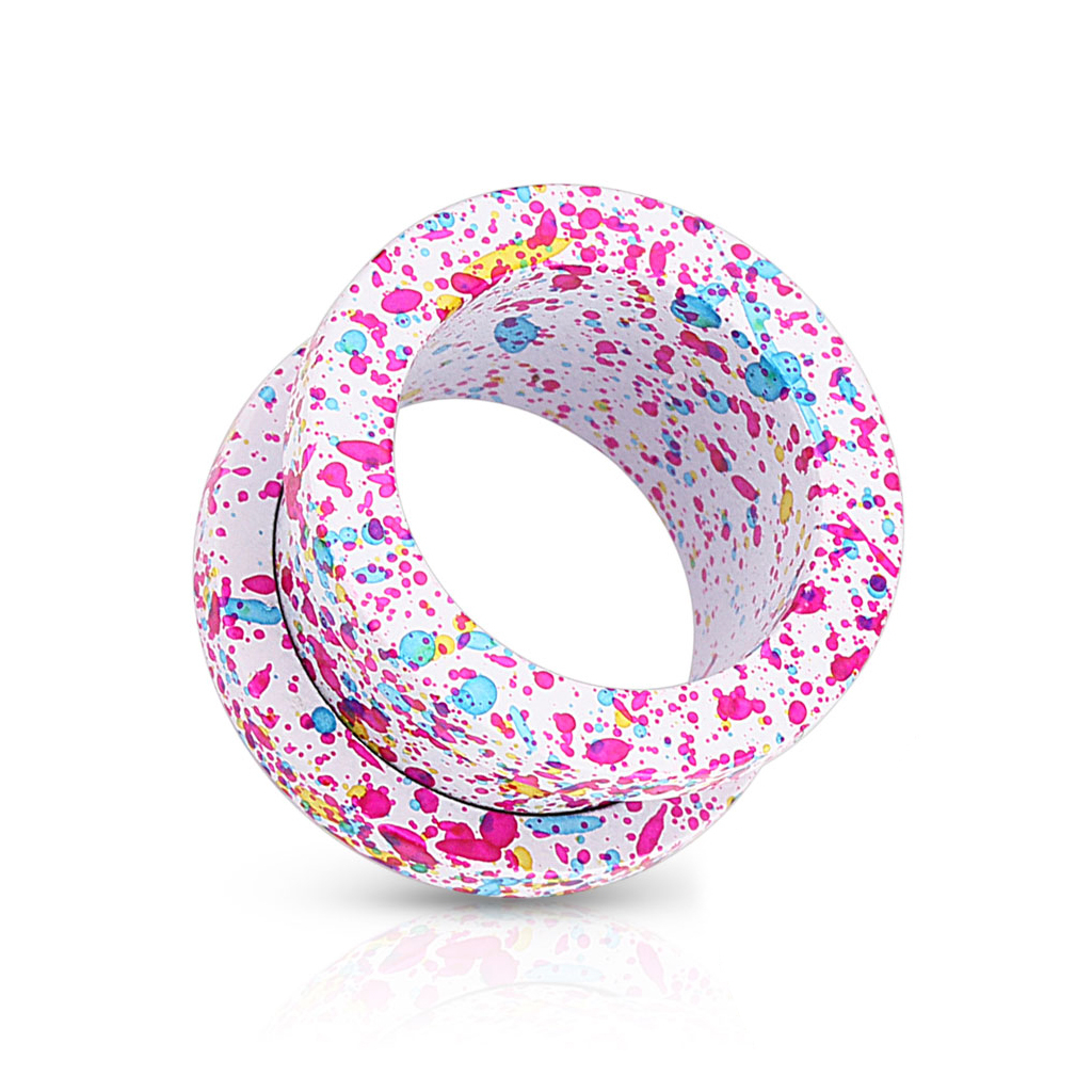 This tunnel is perfect for you if you're crazy about vivid colors and ear gauges. It's made of surgical steel and available in different sizes from 8g to 5/8" (3 mm to 16 mm). The design of this tunnel is inspired by paint splatters made with a brush, all in fresh and diverse color combinations.