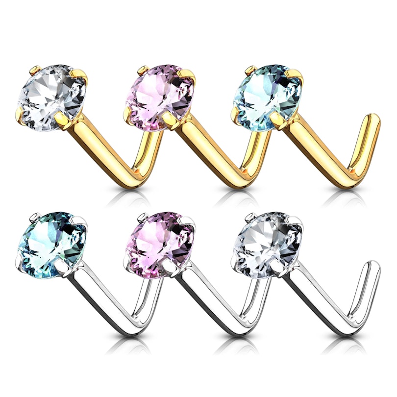 This nose stud is L-shaped, bent in the middle, which ensures that it stays securely in place without slipping out of the piercing. It's a smart and useful design, more than regular nose studs.