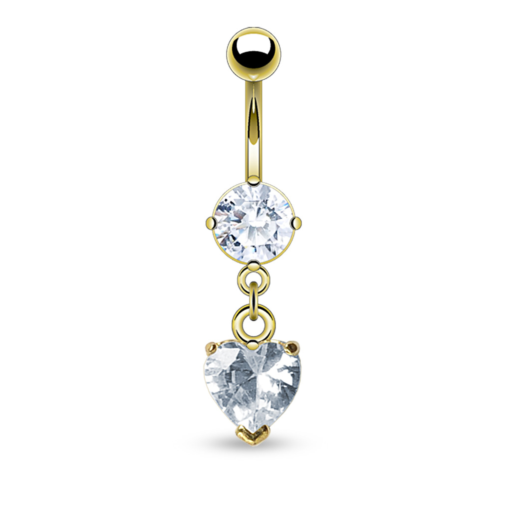 Name: Belly button ring gold-plated with heart-shaped stone dangle