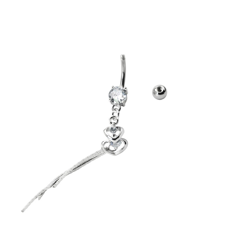 This is a beautiful belly button ring with stones and a dangle with two hearts.