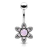 Name: Belly button ring with flower and round opalite