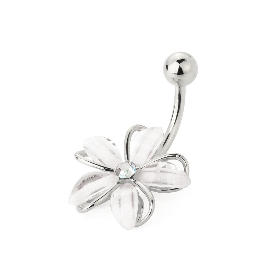 Are you looking for a chic piece to add to your style? This belly button ring has a detailed flower design at the bottom and a simple locking ball at the top. You can choose from three stylish colors the one that matches your style best.