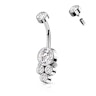 The balls of this belly ring are flat on the back, which means it will fit better against your skin. The jewelry material is surgical steel, decorated with clear CZ stones. The jewelry size is standard with 10 mm barbell length and 1.6 mm thread thickness.