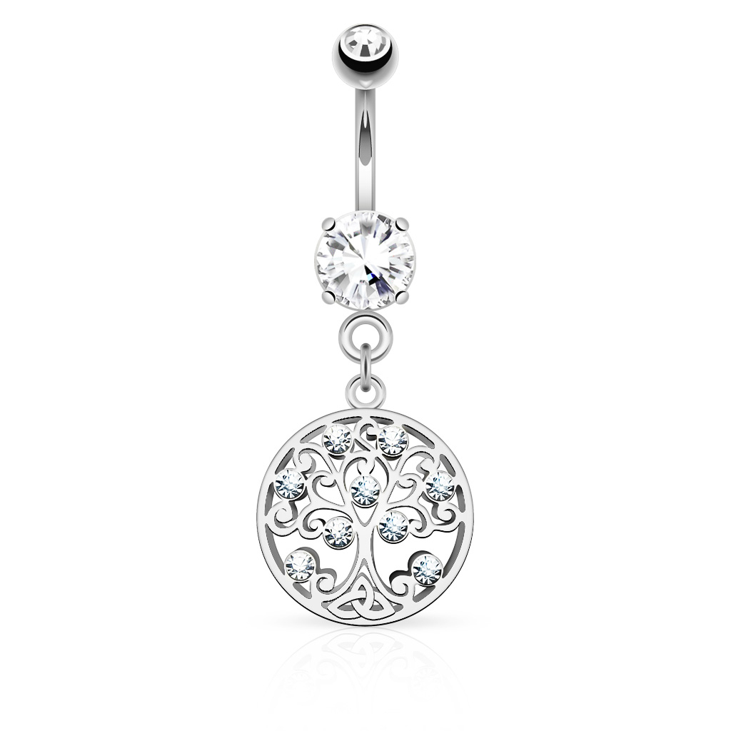 In this beautiful belly ring, the leaves are decorated with beautiful clear stones that resemble fruits. The clear stones give the tree an extraordinary look, making it even stronger.