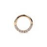 This versatile clicker ring has the advantage of being suitable for different body piercings. The piece measures a gauge of 16g (1.2 mm) and a diameter of 5/16" (8 mm), which makes it a perfect fit for septum and daith piercings. However, these are not the only options, as you may wear it wherever you want, as long as the bar gauge matches that of your piercing.