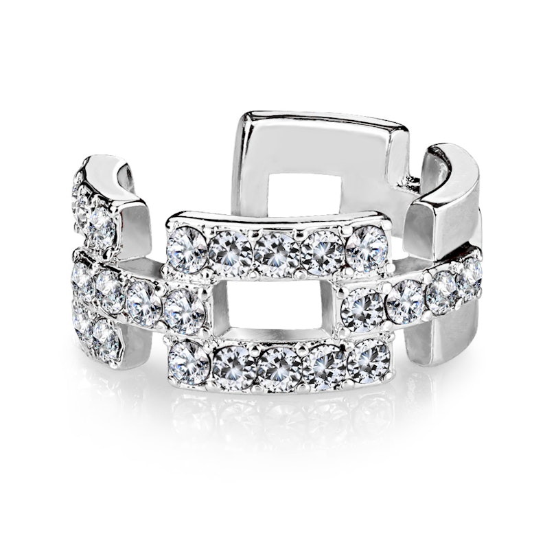 The design consists of many rectangles placed next to each other, almost like a chain. On the outer edge, there are up to five stones on each rectangle - you won't be short of stones with this sparkling ear cuff.