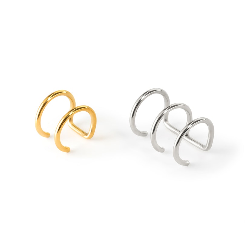 This ear cuff consists of two or three hoops, with an open side to put on your ear without any piercing required. You only have to put it on your cartilage or ear rim, and slightly press it so that it stays on your ear.