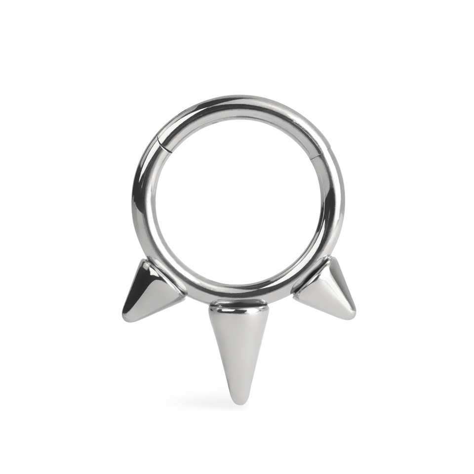 On top of everything mentioned above, the jewelry looks super edgy, as it is decorated with 3 spikes. The middle decoration is 3/16" (5 mm) and the two side spikes are 0.13" (3.4 mm).