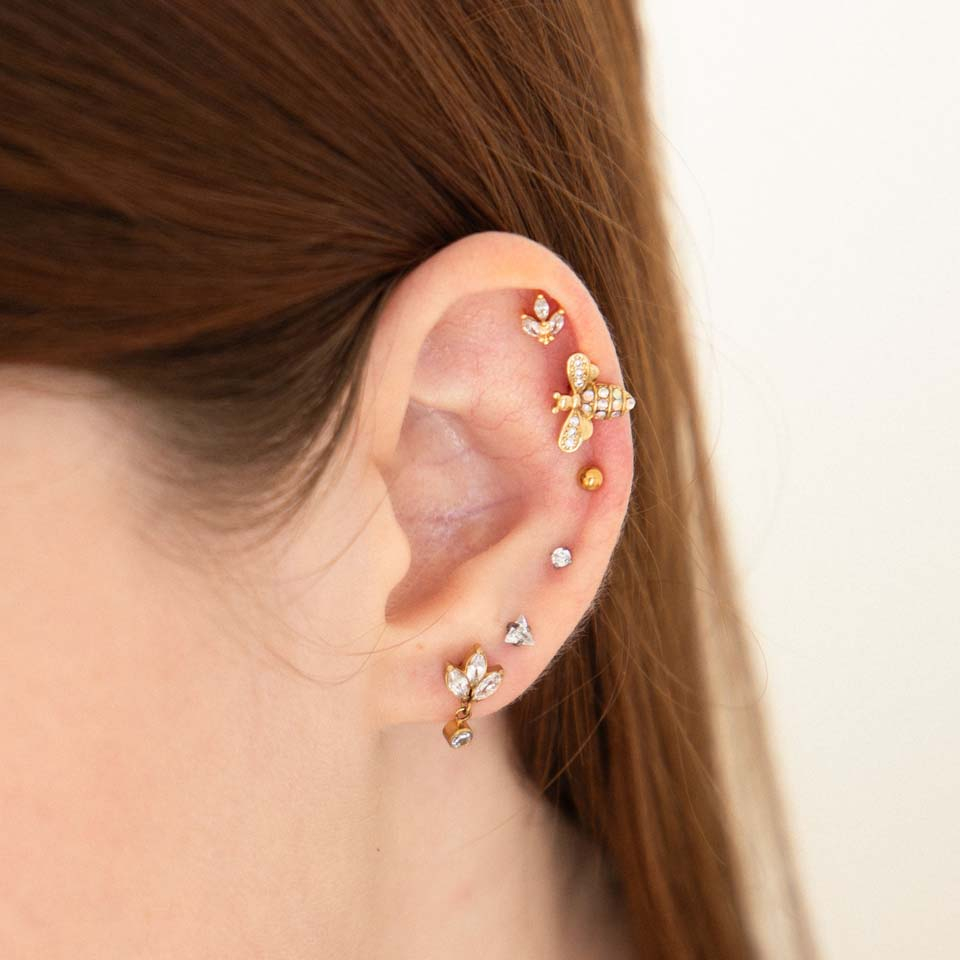 Placement: Tragus, Spiderbite, Snakebite, Medusa, Madonna, Lower labret, Lobe, Helix, Conch, Forward helix, Angelbite
