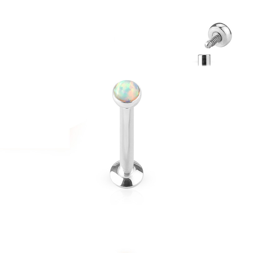 Name: Labret with internally threaded post and opal stone
