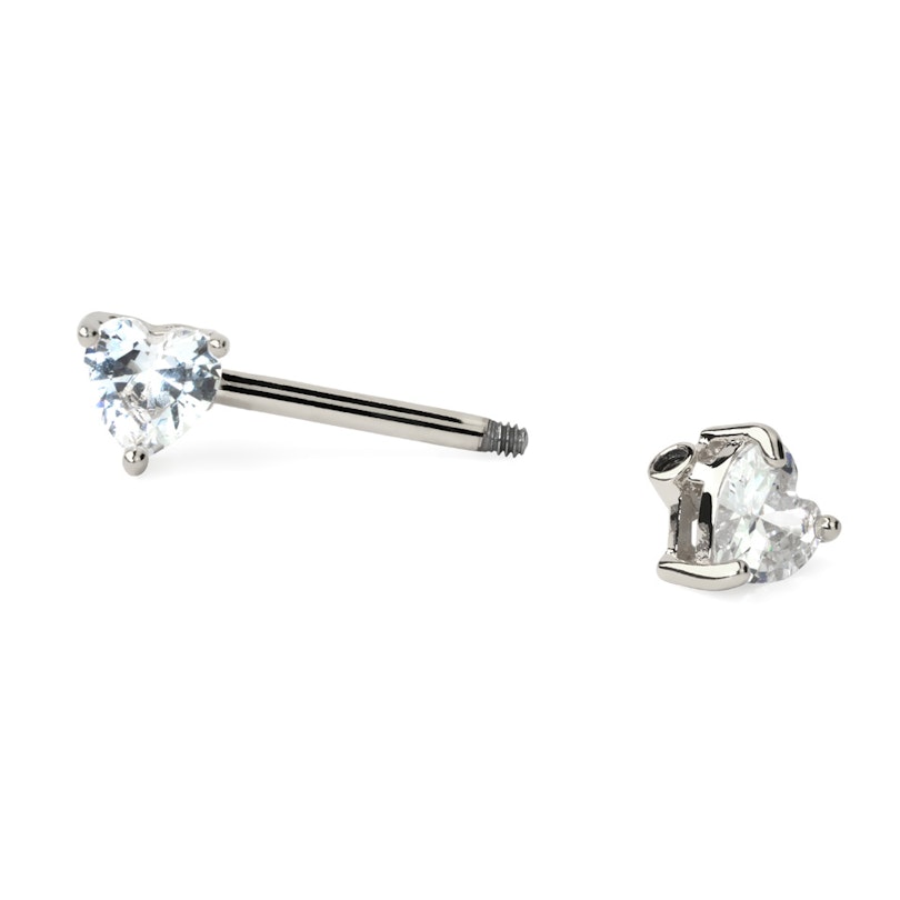 Name: Nipple barbell with heart-shaped zirconia stones in your choice of color