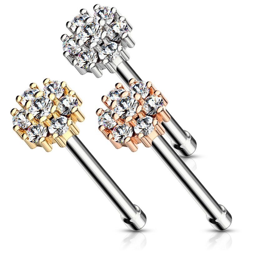 Nose stud with round top and many stones