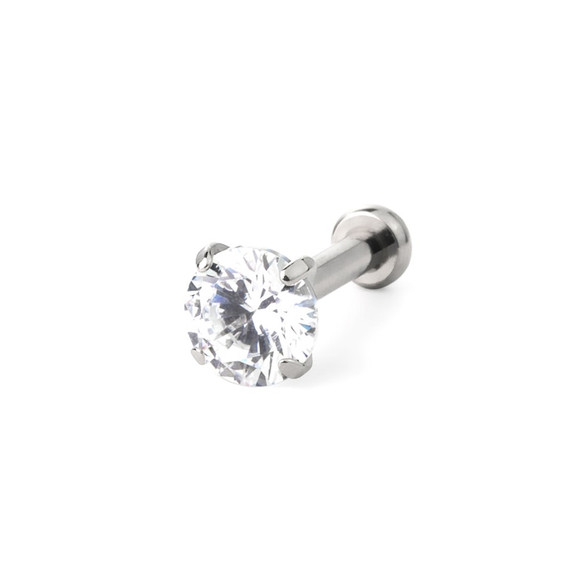 Labrets are must-have jewelry because you can use them in many different piercings. This classic labret also comes in various sizes, making it easy to find the perfect size for your piercing. The labret features a pretty prong set stone in clear color.