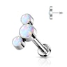 The jewelry comes in two different designs. You can choose between a combination of 3 stones or 5 stones. And of course, we provide you with color options on these beautiful opal stones. The stones vary in size. On the model with 3 opal stones, the decorative stones are in sizes of 0.11" and 0.15" (2.9 mm and 3.8 mm). On the product model with 5 stones, the sizes are 0.07", 0.12", and 0.16" (1.9 mm, 3 mm, and 4 mm).