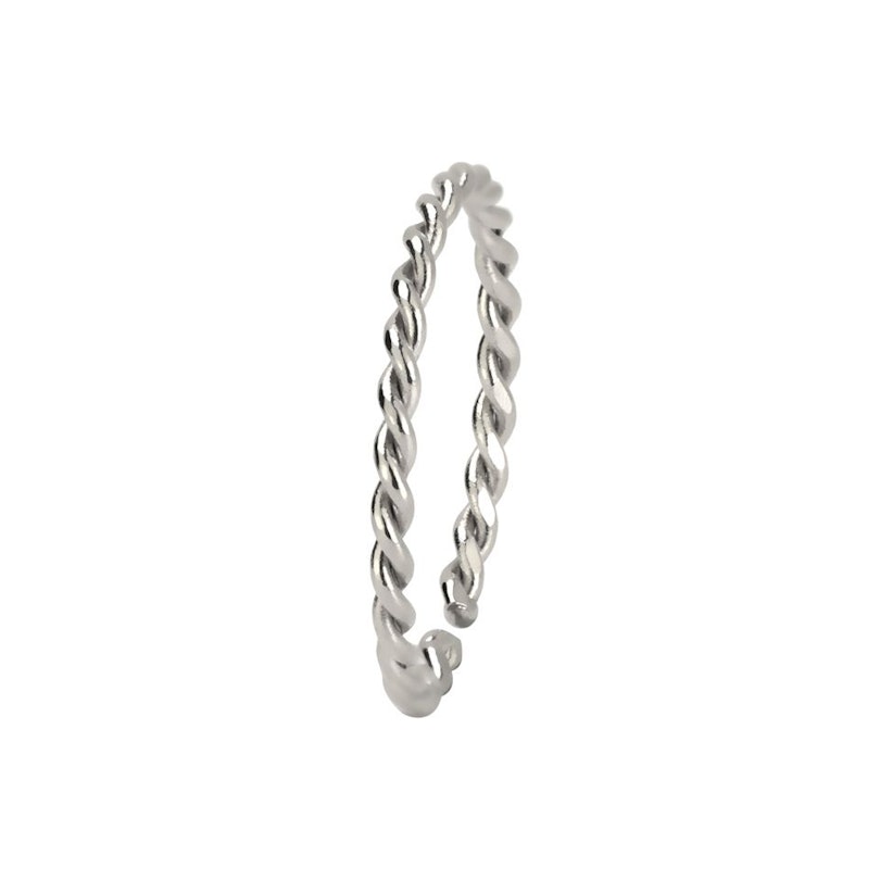 This ring is a different version of the popular seamless hoop. The normal one is a single piece of metal with connected ends. This new version consists of two metallic pieces that have been twisted, getting a braided effect. The ends have been slightly welded and rounded for easy insertion into the piercing and to prevent the parts from breaking apart.