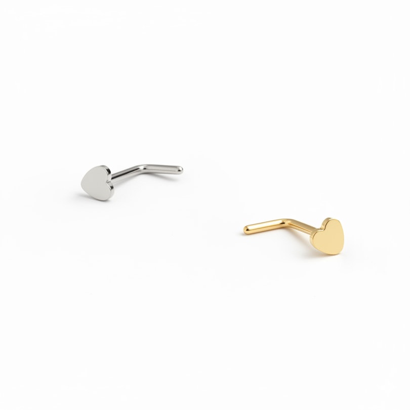 Designed for nostril piercings, this heart-shaped stud works quietly but never goes unnoticed. Available in gold and silver finishes.
