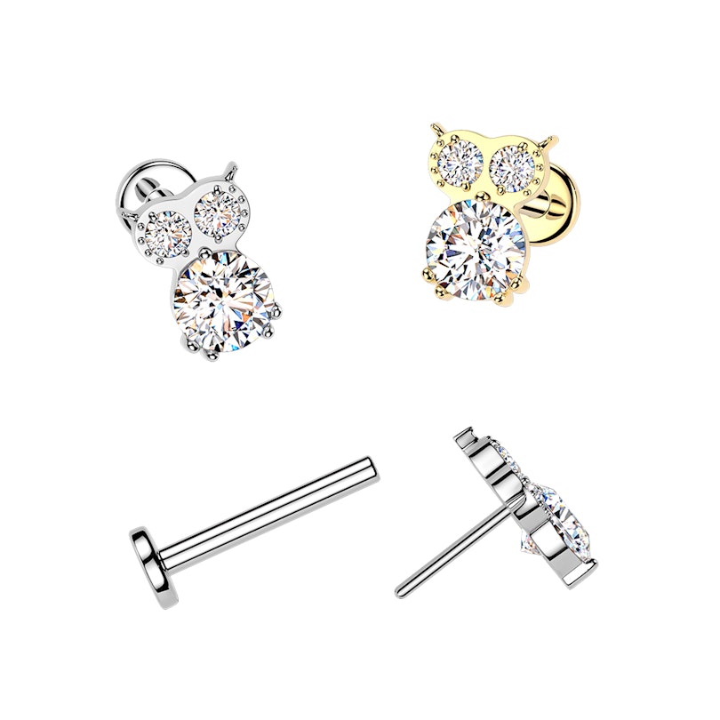 Titanium owl labret with gemstones