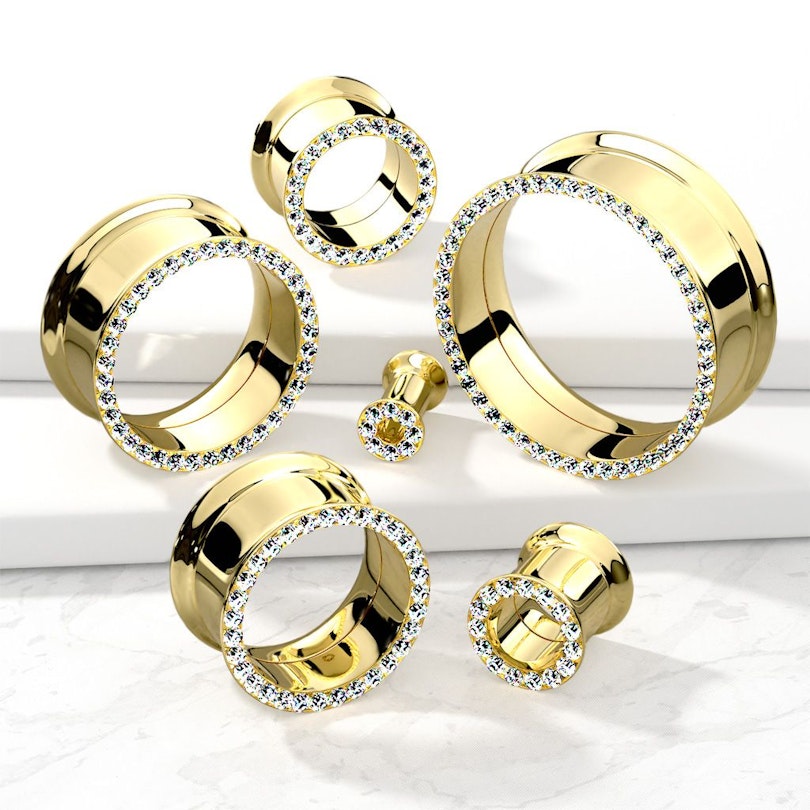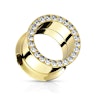 This tunnel is made of gold-plated surgical steel with an edge decorated with studded small white stones.