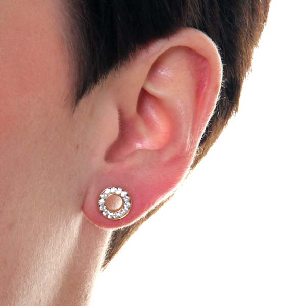 This tunnel is made of gold-plated surgical steel with an edge decorated with studded small white stones.