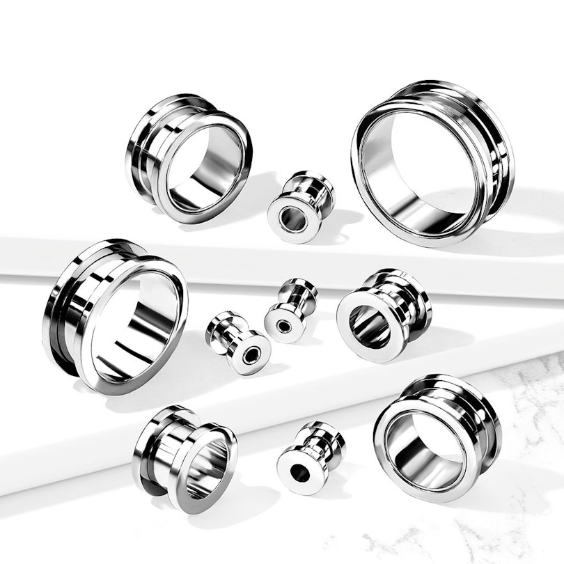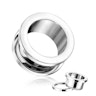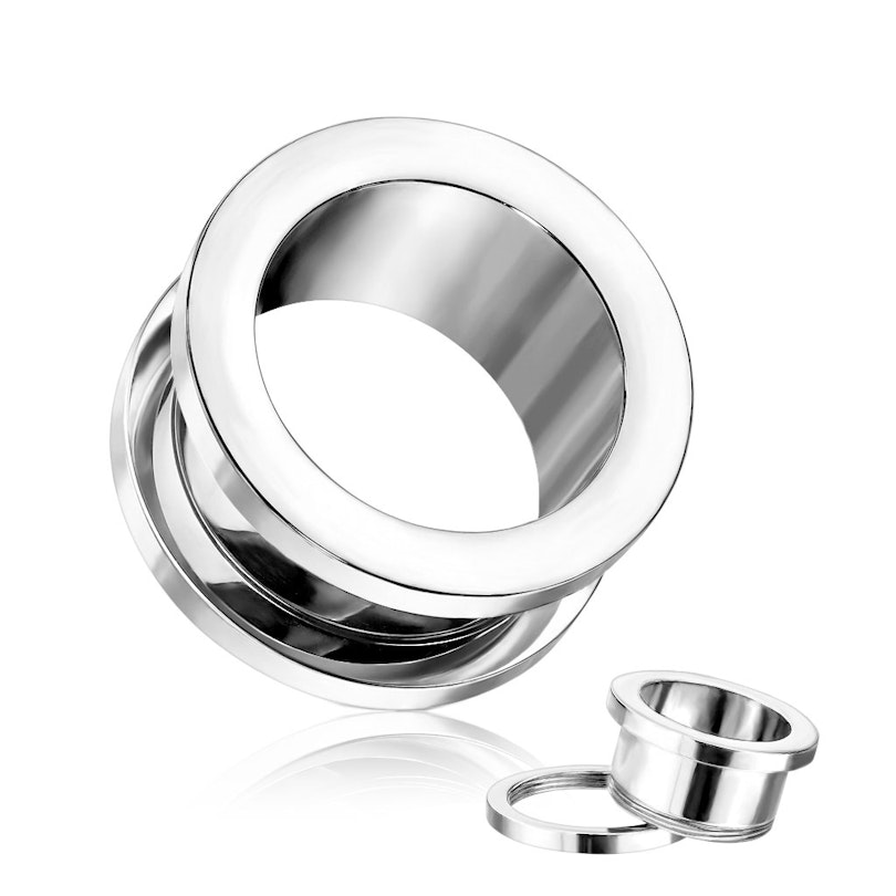 The tunnel comes, as the name also suggests, with a screw thread. This means that the back of the tunnel can be unscrewed, so it's easier to put in and take out. The tunnel is available in sizes from 8g (3 mm) up to 1-inch (25 mm).