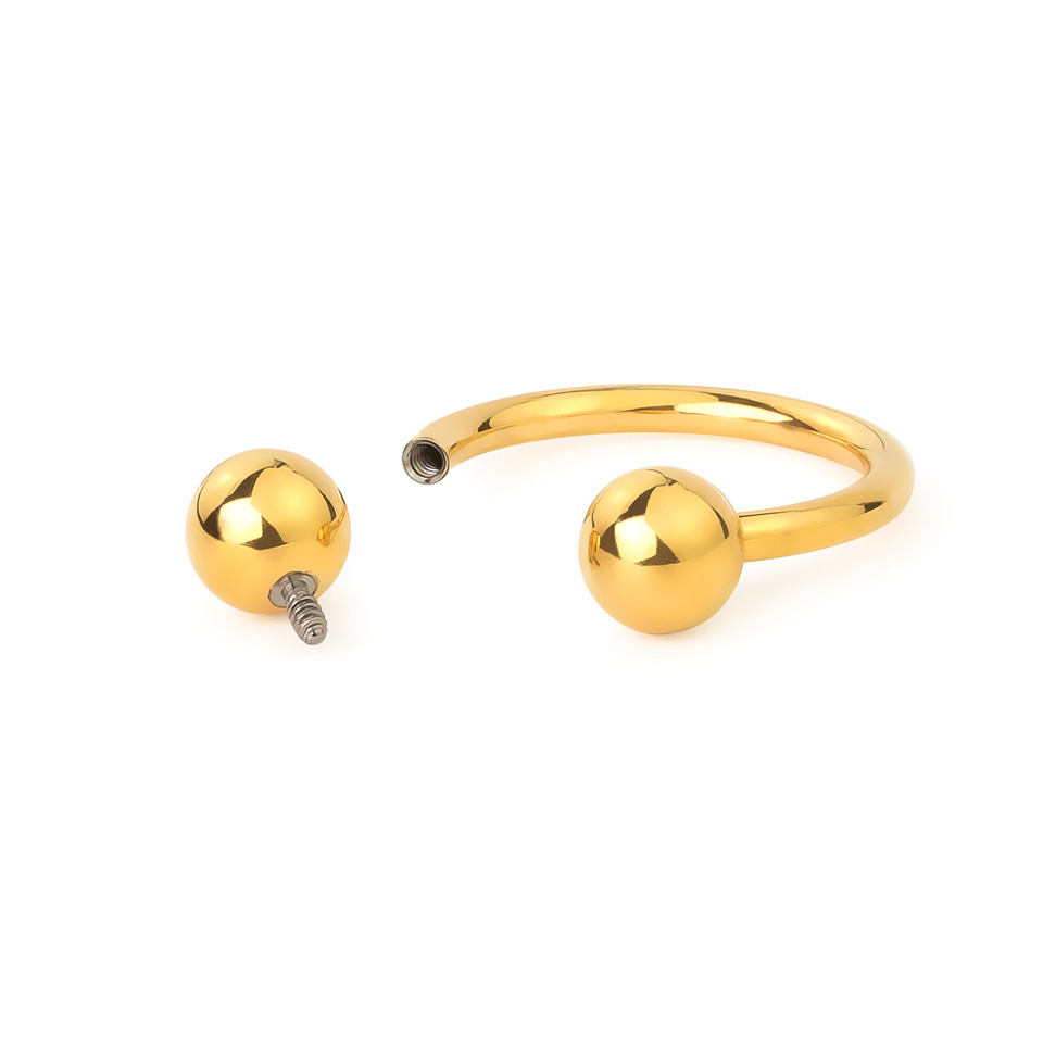 This barbell is made of colored titanium, making it ideal for first-time use, as there are no traces of nickel in titanium. You don't need to use ordinary dull titanium, which is matte and very dark. Now you can put some color in your piercing with a colored circular barbell. Another advantage of this item is that it's internally threaded, equipped with the thread inside the bar. That means the ball has a rod that you insert into the bar, instead of screwing it over the bar. This makes the risk of tearing your tissue during insertion minimal.