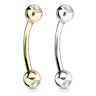 Name: Curved barbell made of 14k gold with bezel-set stones