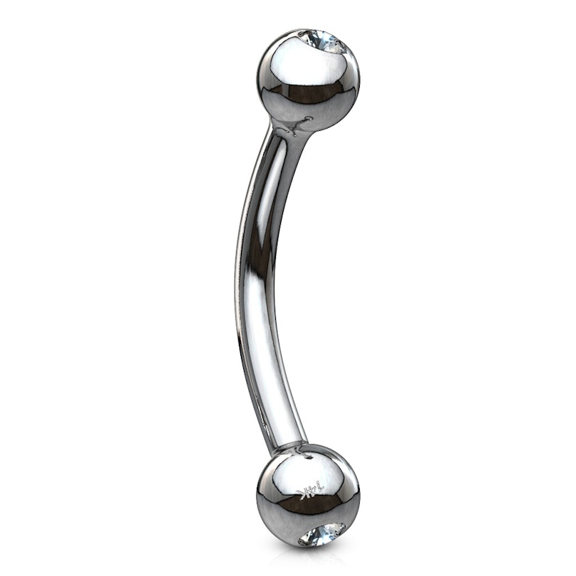 Beautiful and feminine curved barbell made of 14K gold with a gleaming gem in the balls on each end. This barbell is perfect for you if you want to get a classy and discreet look, with exquisite elegance. Despite the simple design, it will capture everyone's gaze. It has a fine design that will never go out of fashion. It's available in two different sizes that you can select before adding it to your shopping cart.