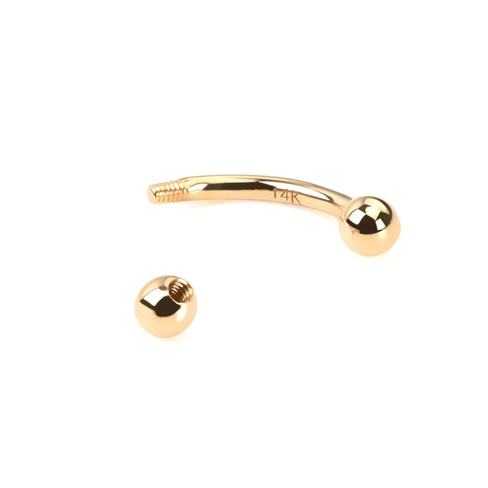 This is an elegant and luxurious curved barbell made of pure 14 karat gold. It has a simple but sleek design, and now you can choose the length, gauge, and the size of the balls.
