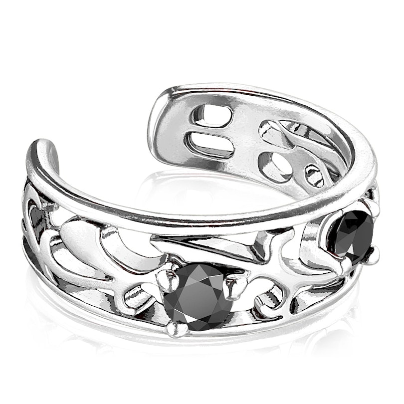 This ear cuff features a beautiful filigree design inspired by nature, with lines that represent branches. Besides, it has two small black stones, placed separately on the outside of the cuff, creating an interesting asymmetrical composition. That's the side that will be visible when you wear it in your earlobe or cartilage.