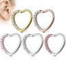 Piercing jewelry and hearts have always been a good combination, and this ear piercing is a clear example of that. This ring has the shape of a heart and is made of a single metal piece. The inside measurements of this heart are 9mm width by 9mm height. The heart has a small opening so that you can twist the ring open to insert it into your piercing. Once in the ear, it will stay perfectly in place.