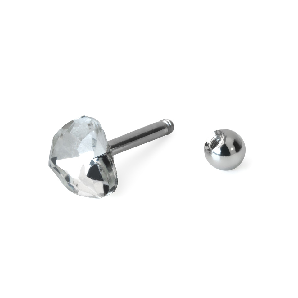 The stud has a gauge of 16g (1.2 mm) and a length of 1/4" (6 mm), while the zirconias are approximately 1/8" (3 mm). The balls can be screwed and unscrewed, just like regular piercings. All of them have the same characteristics; the only difference is the shape of the stone and the color.