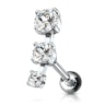 This ear piercing made of surgical steel is designed with three stones in a row that get gradually smaller, resembling a shooting star.