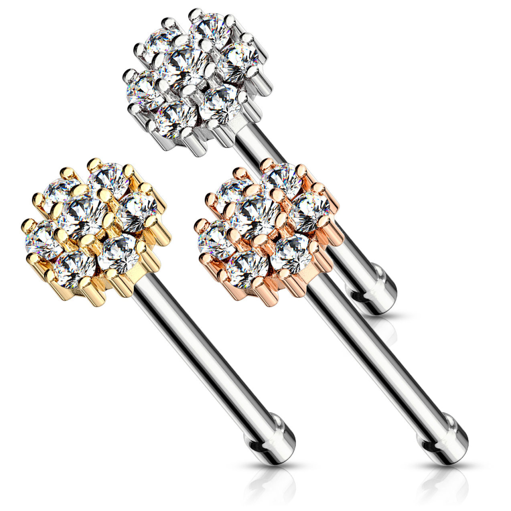 Nose stud with round top and many stones