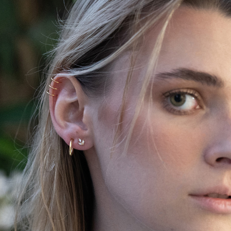 This ear cuff consists of two or three hoops, with an open side to put on your ear without any piercing required. You only have to put it on your cartilage or ear rim, and slightly press it so that it stays on your ear.