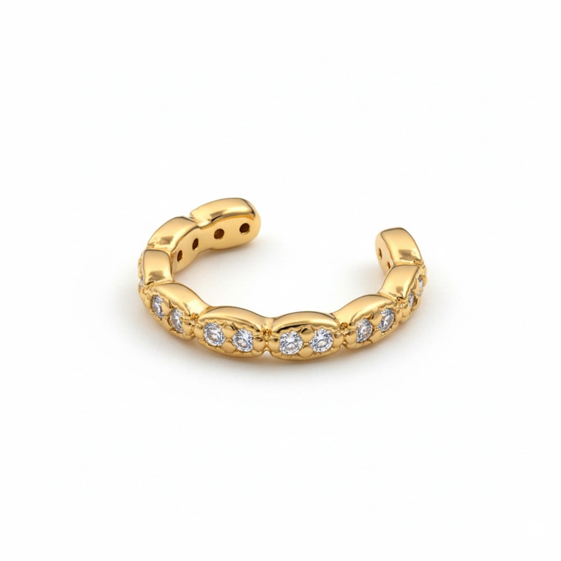 Κατασκευασμένο από επιχρυσωμένο ορείχαλκο, είναι κατάλληλο για τις περισσότερες επιδερμίδες και σχεδιασμένο για καθημερινή χρήση. Ανθεκτικό σε πιτσιλίσματα, αντέχει στην καθημερινότητα και είναι εύχρηστο, αυτό το ear cuff είναι ένας απλός τρόπος να ανανεώσεις το στιλ σου χωρίς μόνιμες δεσμεύσεις.